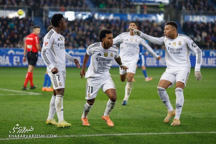 SPORTS آلاوس ۱ – رئال مادرید ۲/ نجات بهدست سرباز رودریگو؛ آلونسو فعلاً ماندگار است By FYEieHvgyy - December 15, 2025 0 12 FacebookTwitterPinterestWhatsApp رئال مادرید در دیداری مهم از هفته شانزدهم لالیگا اسپانیا مقابل آلاوس پیروز شد.