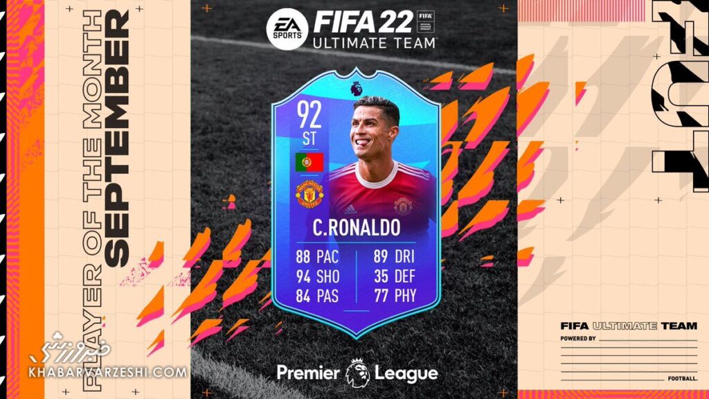 کریستیانو رونالدو ستاره باتجربه منچستریونایتد برای پنجمین مرتبه بهترین بازیکن ماه لیگ برتر انگلیس شد.