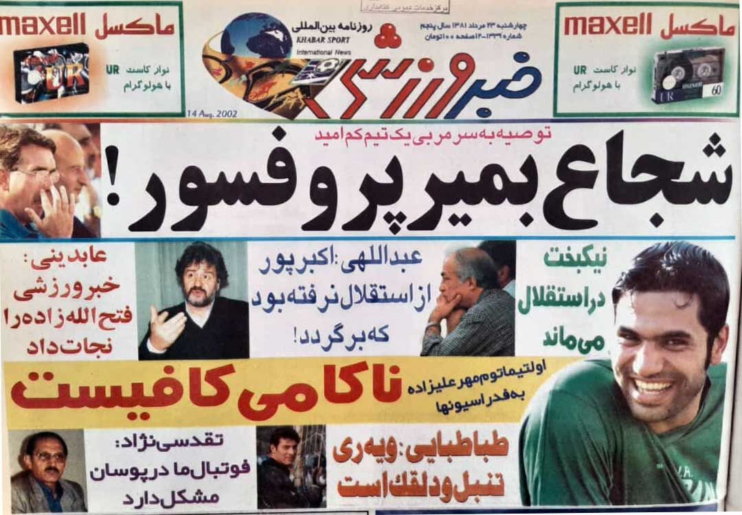 SPORTS خاطرهبازی با خبرورزشی شجاع بمیر پروفسور! By - August 14, 2022 0 80 FacebookTwitterPinterestWhatsApp جلد روزنامه خبرورزشی چهارشنبه ۲۳ مرداد ۱۳۸۱ را میبینید.