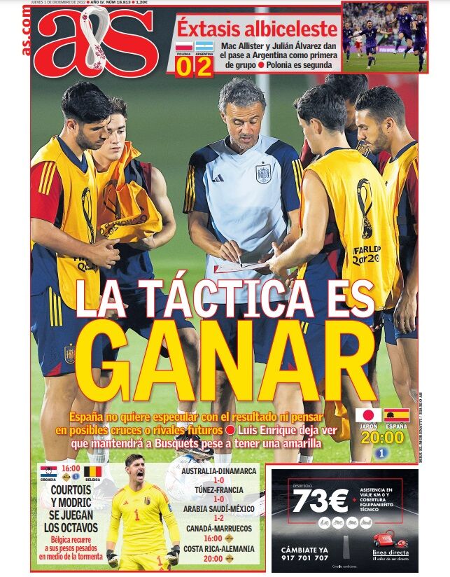 SPORTS روزنامه آ اس این تاکتیک برنده شدن است By - December 1, 2022 0 90 FacebookTwitterPinterestWhatsApp اسپانیا میخواهد با برد و صدرنشینی به مرحله بعد جامجهانی ۲۰۲۲ برود. شاگردان انریکه با تاکتیکی متفاوت مقابل ژاپن قرار میگیرند.