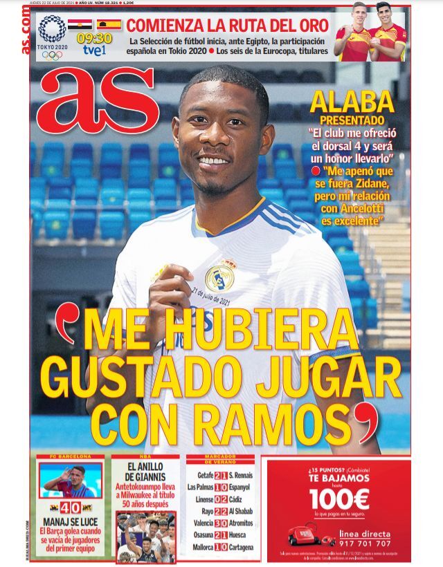 SPORTS روزنامه آ اس| دوست داشتم با راموس همبازی شوم By - July 22, 2021 0 101 FacebookTwitterPinterestWhatsApp داوید آلابا پیراهن شماره ۴ سرخیو راموس را گرفت و گفت دوست داشت کاپیتان رئالمادرید هم بماند تا با او همبازی شود.