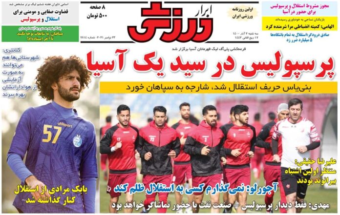 SPORTS روزنامه ابرار ورزشی| پرسپولیس در سید یک آسیا By - November 22, 2021 0 82 FacebookTwitterPinterestWhatsApp جلد روزنامه ابرار ورزشی سهشنبه ۲ آذر را میبینید.