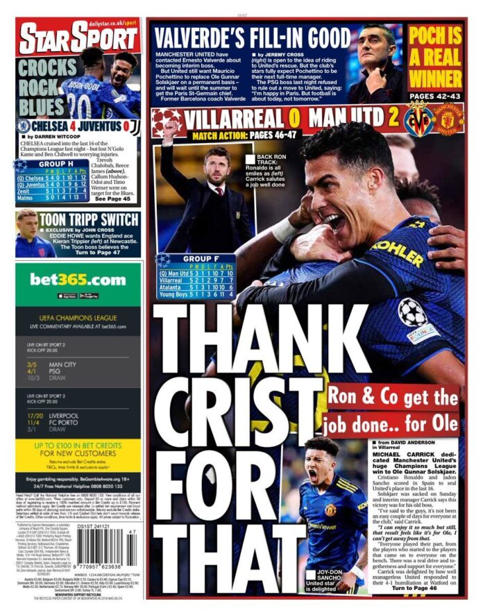 SPORTS روزنامه استار| ممنون کریس برای آن By - November 24, 2021 0 103 FacebookTwitterPinterestWhatsApp کریستیانو رونالدو دوباره در لیگ قهرمانان اروپا سرنوشتساز شد. برتری منچستریونایتد مقابل ویارئال شیاطینسرخ را به مرحله حذفی رساند.