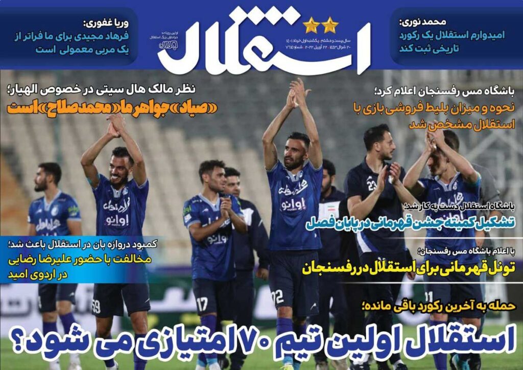 روزنامه استقلال جوان| استقلال اولین تیم ۷۰ امتیازی میشود؟ 4 years ago جلد روزنامه استقلال جوان یکشنبه ۱ خرداد را میبینید.