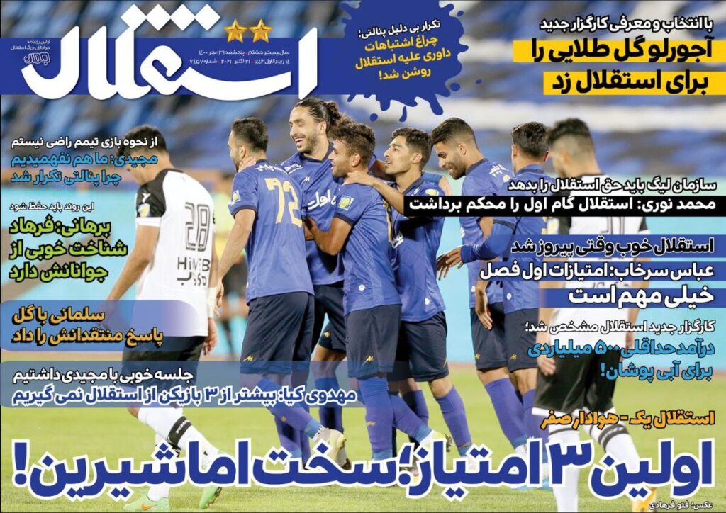 روزنامه استقلال جوان| اولین ۳ امتیاز؛ سخت اما شیرین! 4 years ago جلد روزنامه استقلال جوان پنجشنبه ۲۹ مهر را میبینید.