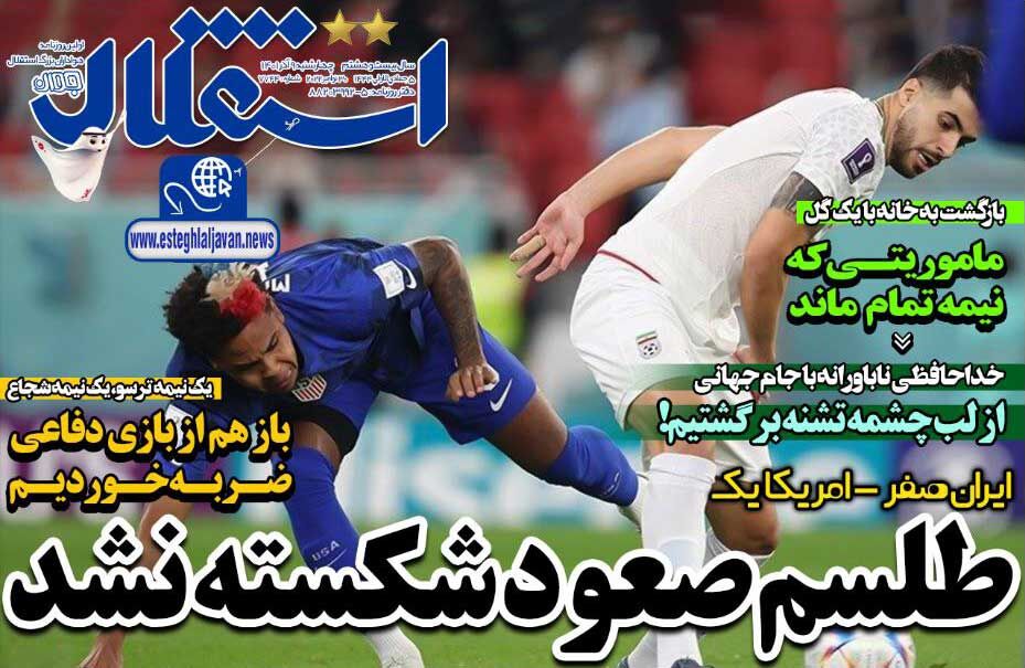 SPORTS روزنامه استقلال جوان طلسم صعود شکسته نشد By - November 29, 2022 0 100 FacebookTwitterPinterestWhatsApp جلد روزنامه استقلال جوان چهارشنبه ۹ آذر را میبینید.