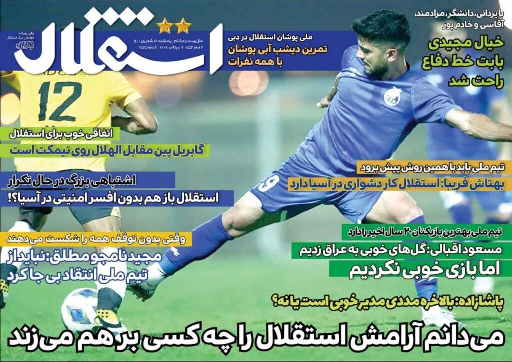 روزنامه استقلال جوان| میدانم آرامش استقلال را چه کسی برهم میزند 4 years ago جلد روزنامه استقلال جوان پنجشنبه ۱۸ شهریور را میبینید.