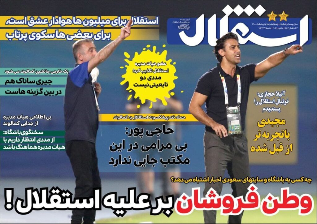 روزنامه استقلال جوان| وطنفروشان بر علیه استقلال! 5 years ago جلد روزنامه استقلال جوان چهارشنبه ۱۵ اردیبهشت را میبینید.
