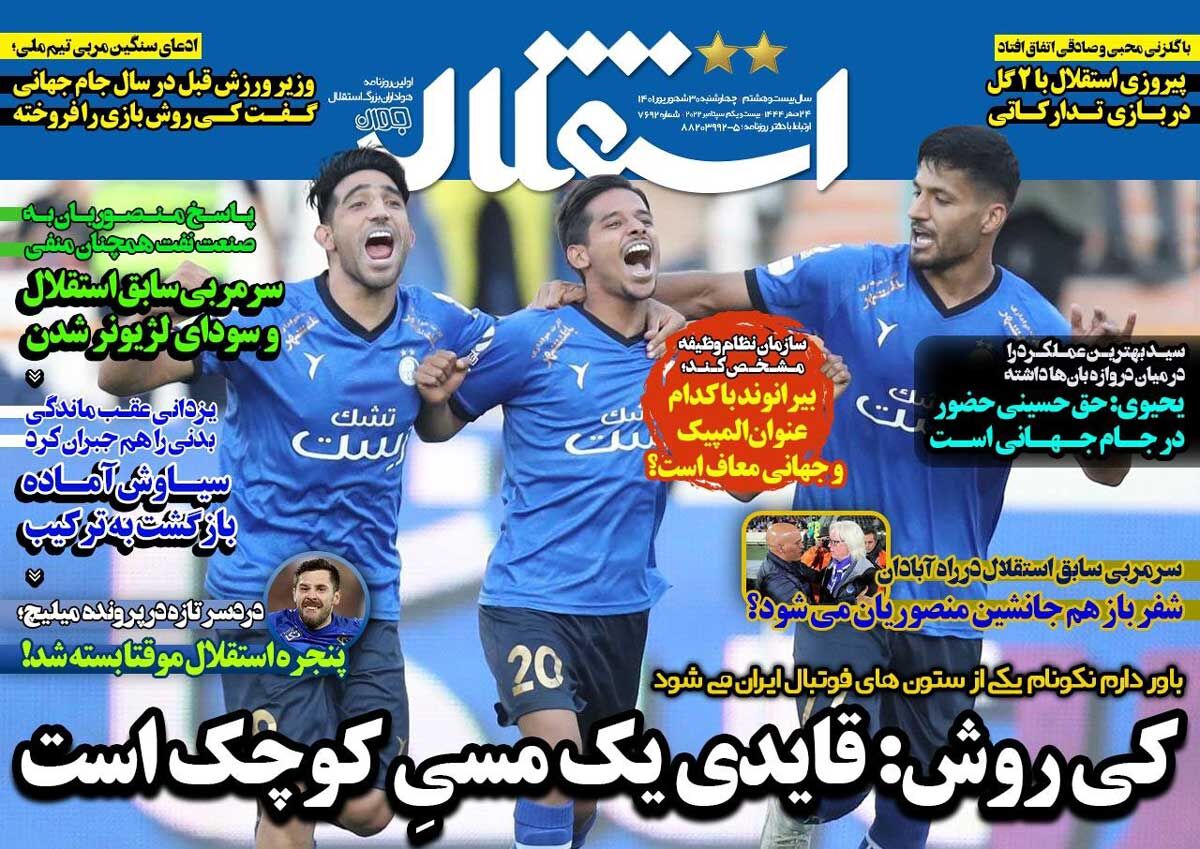 SPORTS روزنامه استقلال جوان کیروش: قایدی یک مسیِ کوچک است By - September 20, 2022 0 75 FacebookTwitterPinterestWhatsApp جلد روزنامه استقلال جوان چهارشنبه ۳۰ شهریور را میبینید.