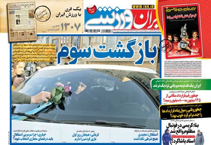 SPORTS روزنامه ایران ورزشی| بازگشت سوم By - March 3, 2021 0 87 FacebookTwitterPinterestWhatsApp جلد روزنامه ایران ورزشی پنجشنبه ۱۴ اسفند را میبینید.