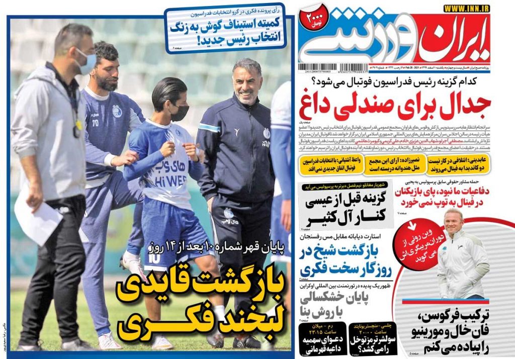 روزنامه ایران ورزشی| بازگشت قایدی، لبخند فکری 5 years ago جلد روزنامه ایران ورزشی یکشنبه ۱۰ اسفند را میبینید.