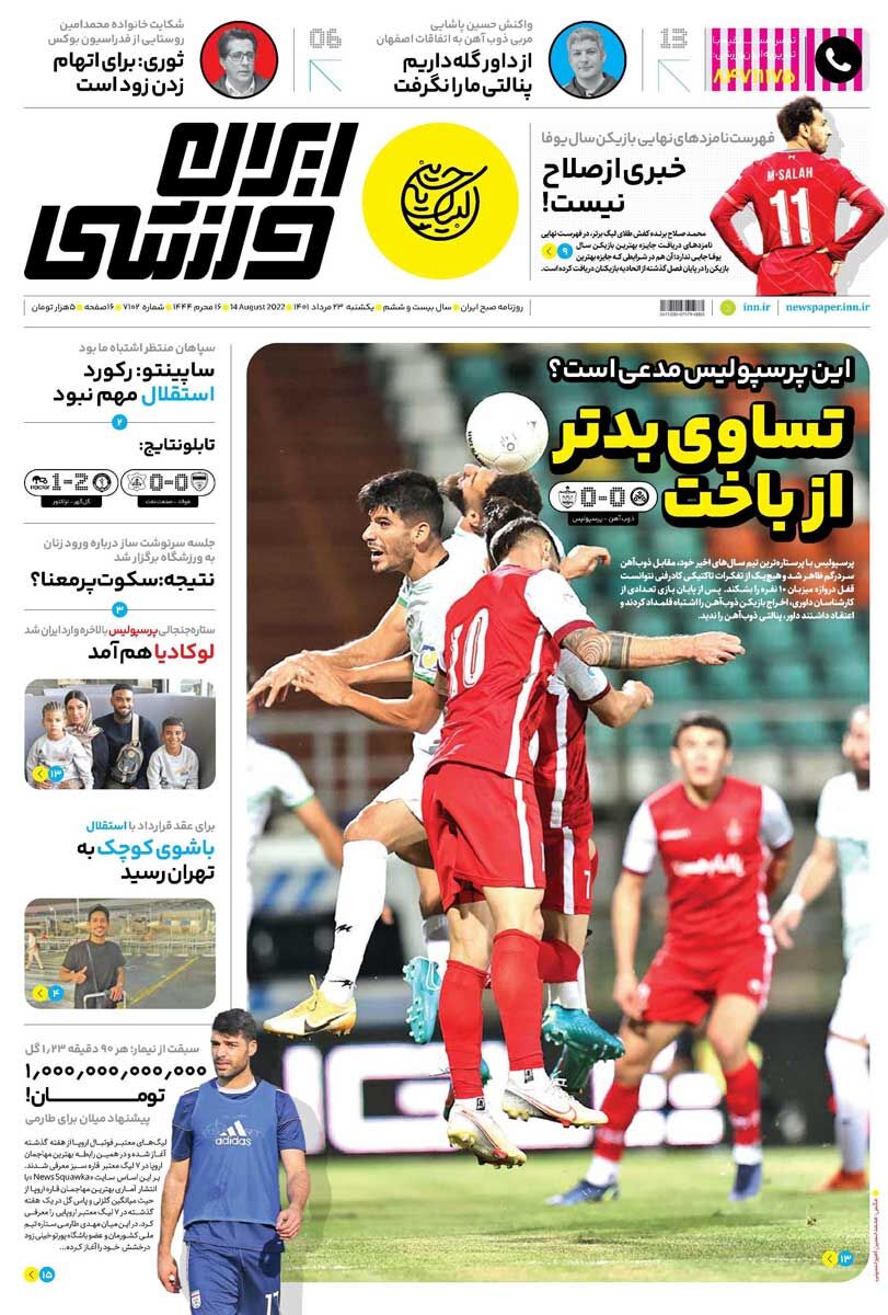 SPORTS روزنامه ایران ورزشی تساوی بدتر از باخت By - August 13, 2022 0 89 FacebookTwitterPinterestWhatsApp جلد روزنامه ایران ورزشی یکشنبه ۲۳ مرداد را میبینید.