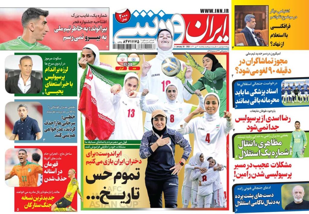 جلد روزنامه ایران ورزشی پنجشنبه ۳۰ دی را میبینید.
