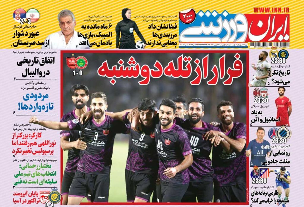 روزنامه ایران ورزشی| فرار از تله دوشنبه 4 years ago جلد روزنامه ایران ورزشی چهارشنبه ۲۴ شهریور را میبینید.
