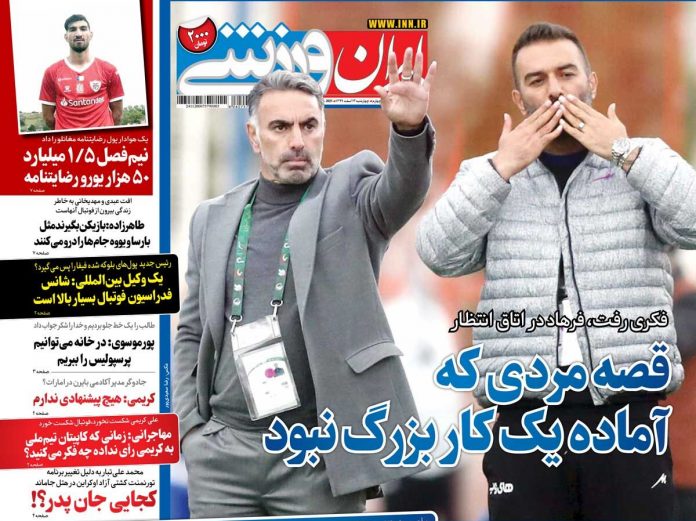 SPORTS روزنامه ایران ورزشی| قصه مردی که آماده یک کار بزرگ نبود By - March 2, 2021 0 96 FacebookTwitterPinterestWhatsApp جلد روزنامه ایران ورزشی چهارشنبه ۱۳ اسفند را میبینید.