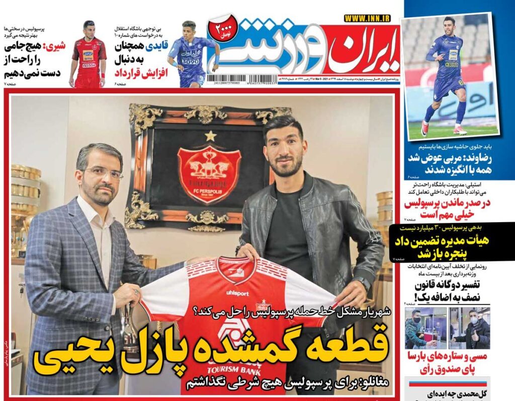 روزنامه ایران ورزشی| قطعه گمشده پازل یحیی 5 years ago جلد روزنامه ایران ورزشی دوشنبه ۱۸ اسفند را میبینید.