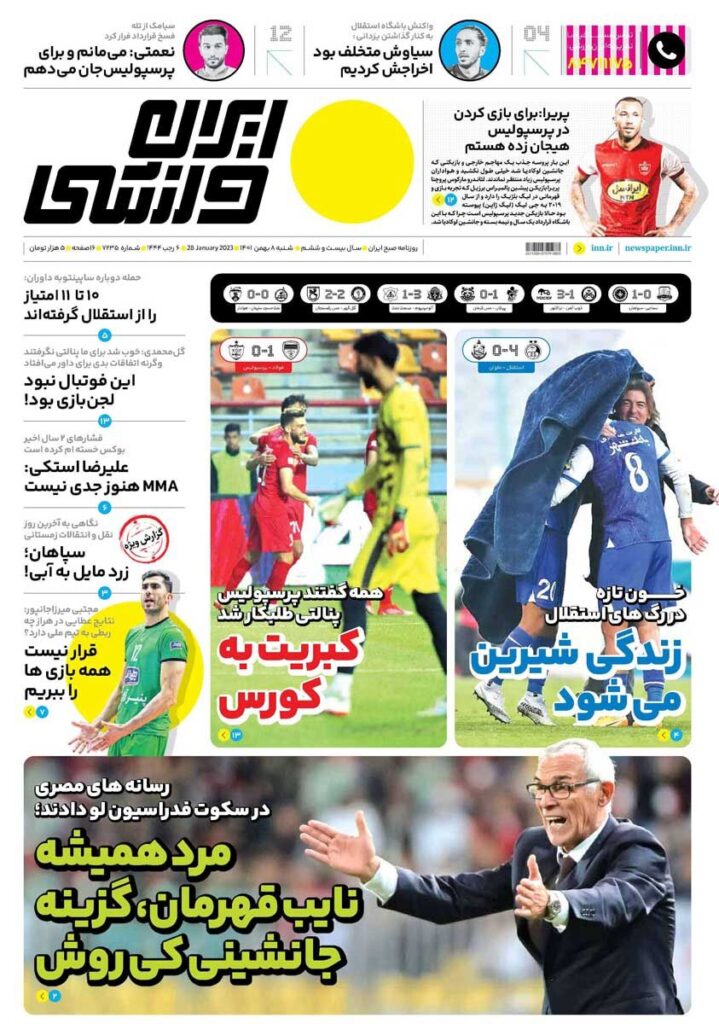 روزنامه ایران ورزشی مرد همیشه نایبقهرمان، گزینه جانشینی کیروش 3 years ago جلد روزنامه ایران ورزشی شنبه ۸ بهمن را میبینید.