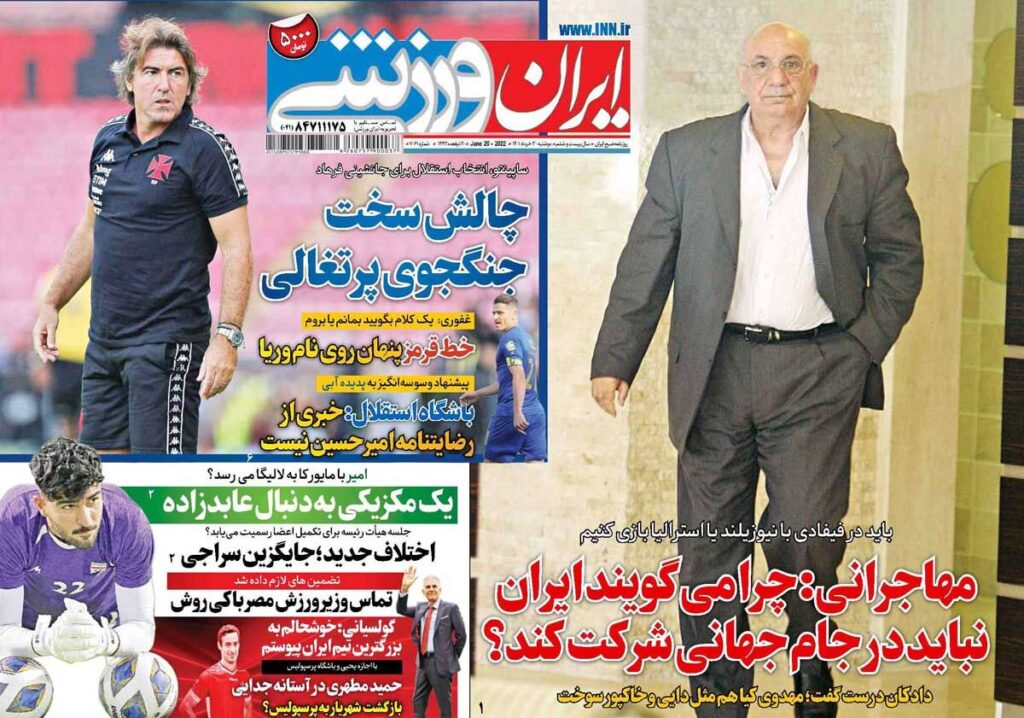 روزنامه ایران ورزشی| مهاجرانی: چرا میگویند ایران نباید در جام جهانی شرکت کند؟ 4 years ago جلد روزنامه ایران ورزشی دوشنبه ۳۰ خرداد را میبینید.