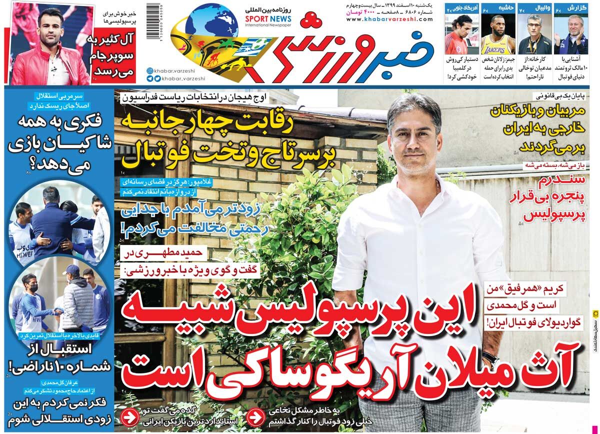 SPORTS روزنامه خبرورزشی| این پرسپولیس شبیه آث میلان آریگو ساکی است By - February 27, 2021 0 96 FacebookTwitterPinterestWhatsApp جلد روزنامه خبرورزشی یکشنبه ۱۰ اسفند را میبینید.