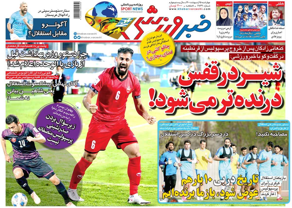 SPORTS روزنامه خبرورزشی| شیر در قفس درندهتر میشود! By - May 4, 2021 0 85 FacebookTwitterPinterestWhatsApp جلد روزنامه خبرورزشی چهارشنبه ۱۵ اردیبهشت را میبینید.