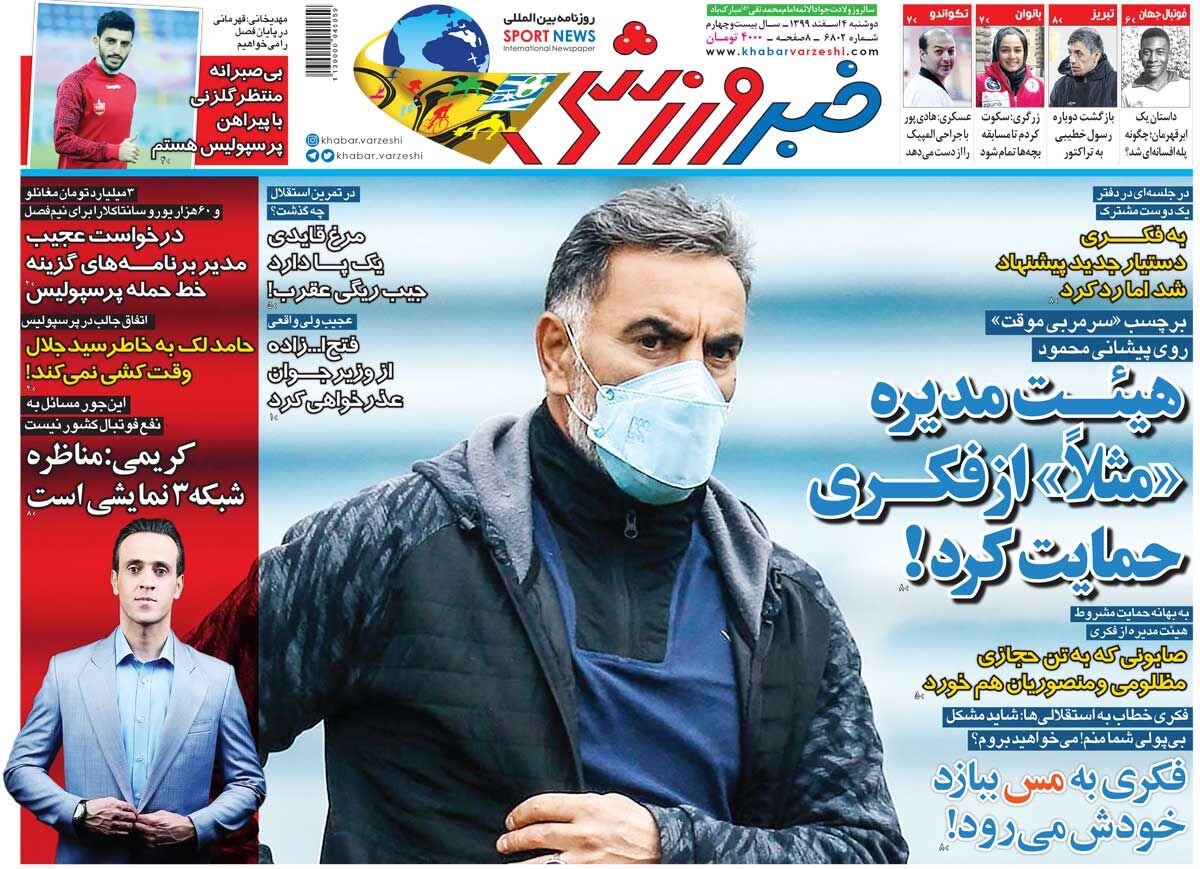 SPORTS روزنامه خبرورزشی| هیئت مدیره «مثلا» از فکری حمایت کرد! By - February 21, 2021 0 120 FacebookTwitterPinterestWhatsApp جلد روزنامه خبرورزشی دوشنبه ۴ اسفند را میبینید.
