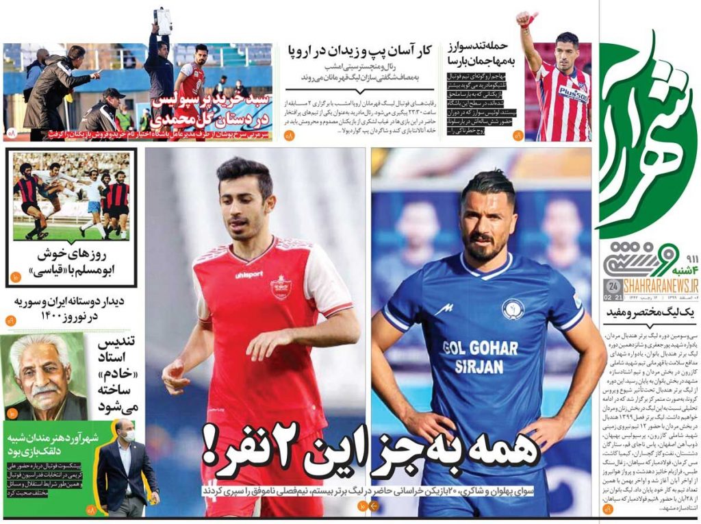 روزنامه شهرآرا ورزشی| همه به جز این ۲ نفر! 5 years ago صفحه ورزشی روزنامه شهرآرا چهارشنبه ۶ اسفند را میبینید.