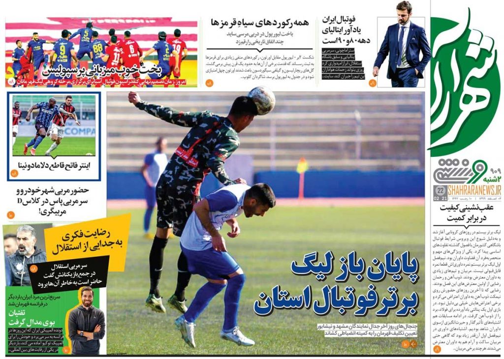 روزنامه شهرآرا ورزشی| پایان باز لیگ برتر فوتبال استان 5 years ago صفحه ورزشی روزنامه شهرآرا دوشنبه ۴ اسفند را میبینید.