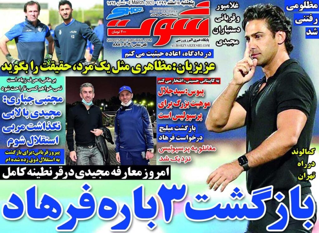 روزنامه شوت| بازگشت ۳ باره فرهاد