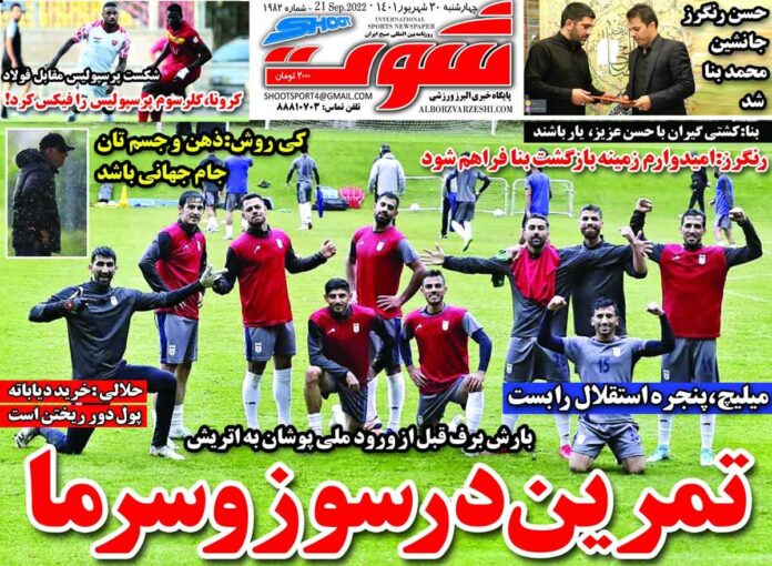 SPORTS روزنامه شوت تمرین در سوز و سرما By - September 20, 2022 0 74 FacebookTwitterPinterestWhatsApp جلد روزنامه شوت چهارشنبه ۳۰ شهریور را میبینید.