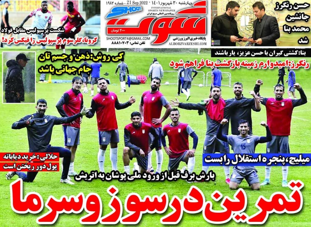 جلد روزنامه شوت چهارشنبه ۳۰ شهریور را میبینید.