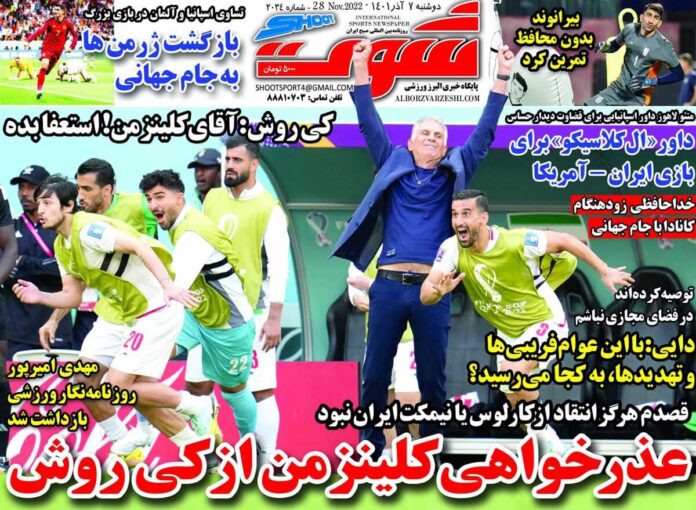 SPORTS روزنامه شوت عذرخواهی کلینزمن از کیروش By - November 27, 2022 0 93 FacebookTwitterPinterestWhatsApp جلد روزنامه شوت دوشنبه ۷ آذر را میبینید.