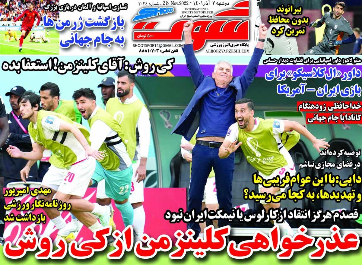 SPORTS روزنامه شوت عذرخواهی کلینزمن از کیروش By - November 28, 2022 0 88 FacebookTwitterPinterestWhatsApp جلد روزنامه شوت دوشنبه ۷ آذر را میبینید.