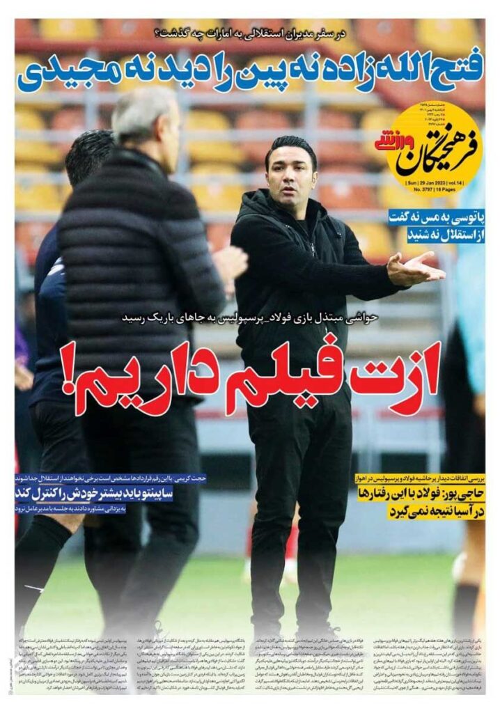 روزنامه فرهیختگان ورزشی ازت فیلم داریم! 3 years ago جلد روزنامه فرهیختگان ورزشی یکشنبه ۹ بهمن را میبینید.