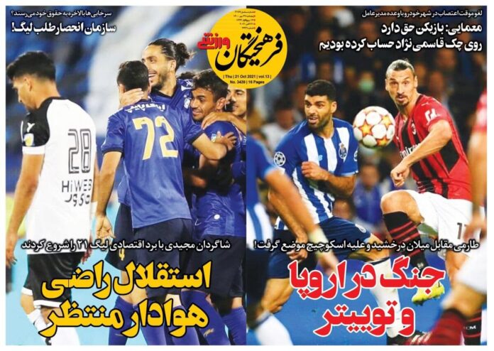 SPORTS روزنامه فرهیختگان ورزشی| جنگ در اروپا و توییتر By - October 20, 2021 0 97 FacebookTwitterPinterestWhatsApp جلد روزنامه فرهیختگان ورزشی پنجشنبه ۲۹ مهر را میبینید.