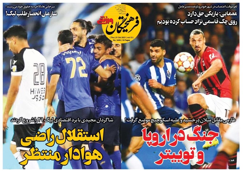 روزنامه فرهیختگان ورزشی| جنگ در اروپا و توییتر 4 years ago جلد روزنامه فرهیختگان ورزشی پنجشنبه ۲۹ مهر را میبینید.
