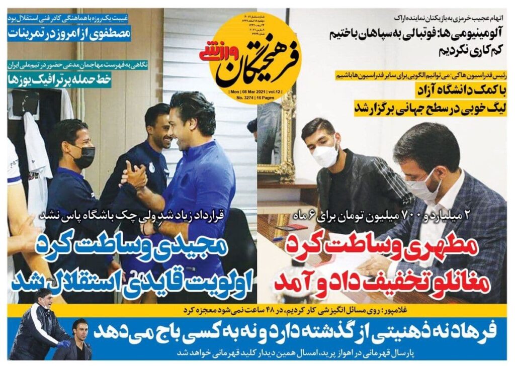 روزنامه فرهیختگان ورزشی| مجیدی وساطت کرد، اولویت قایدی استقلال شد 5 years ago جلد روزنامه فرهیختگان ورزشی دوشنبه ۱۸ اسفند را میبینید.
