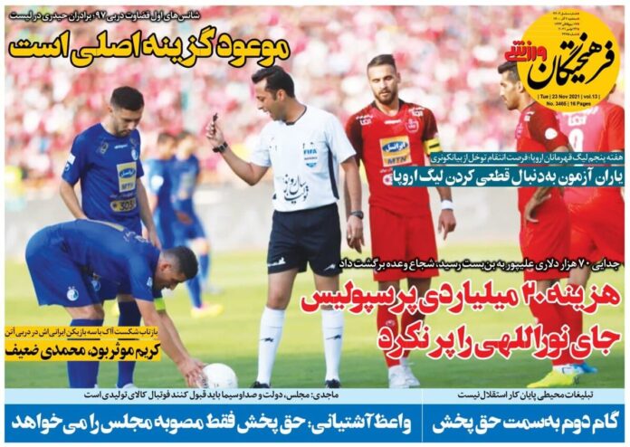 SPORTS روزنامه فرهیختگان ورزشی| هزینه ۲۰ میلیاردی پرسپولیس جای نوراللهی را پر نکرد By - November 22, 2021 0 98 FacebookTwitterPinterestWhatsApp جلد روزنامه فرهیختگان ورزشی سهشنبه ۲ آذر را میبینید.