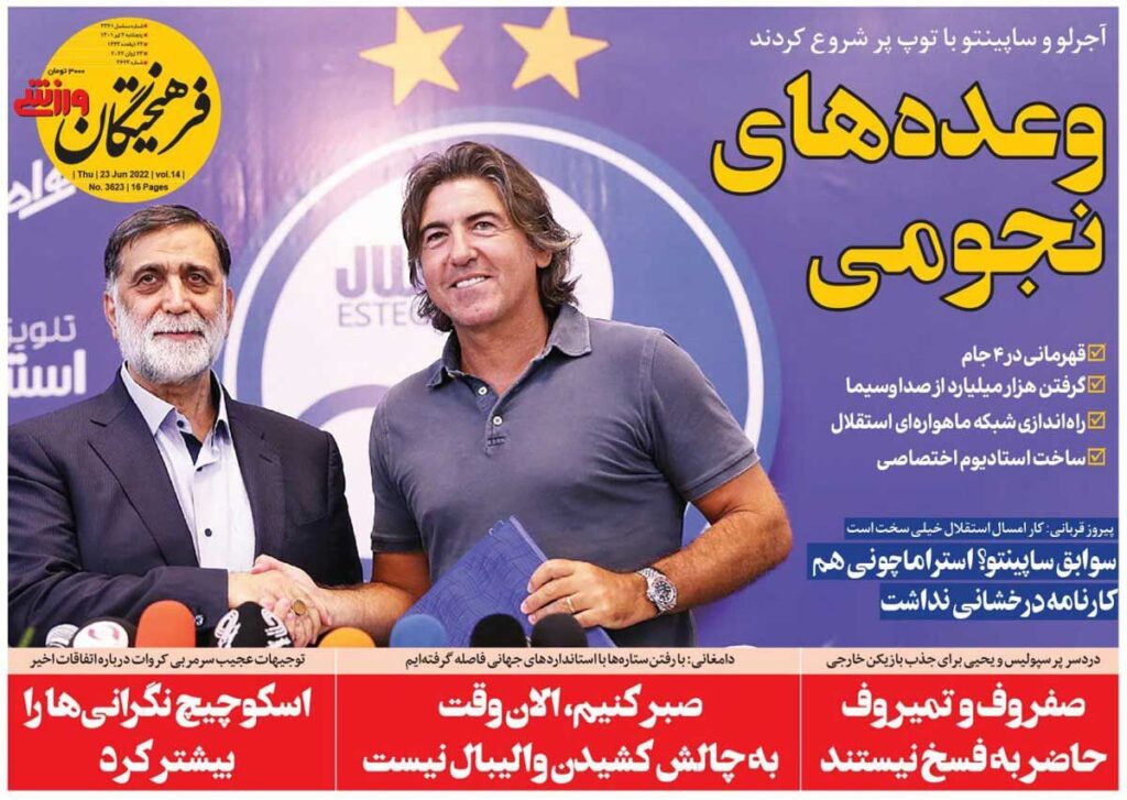 روزنامه فرهیختگان ورزشی| وعدههای نجومی 3 years ago جلد روزنامه فرهیختگان ورزشی پنجشنبه ۲ تیر را میبینید.