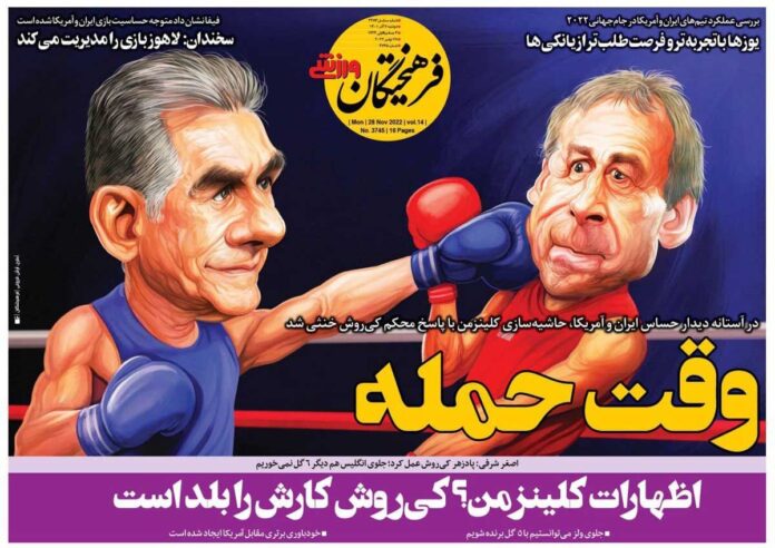 SPORTS روزنامه فرهیختگان ورزشی وقت حمله By - November 27, 2022 0 96 FacebookTwitterPinterestWhatsApp جلد روزنامه فرهیختگان ورزشی دوشنبه ۷ آذر را میبینید.
