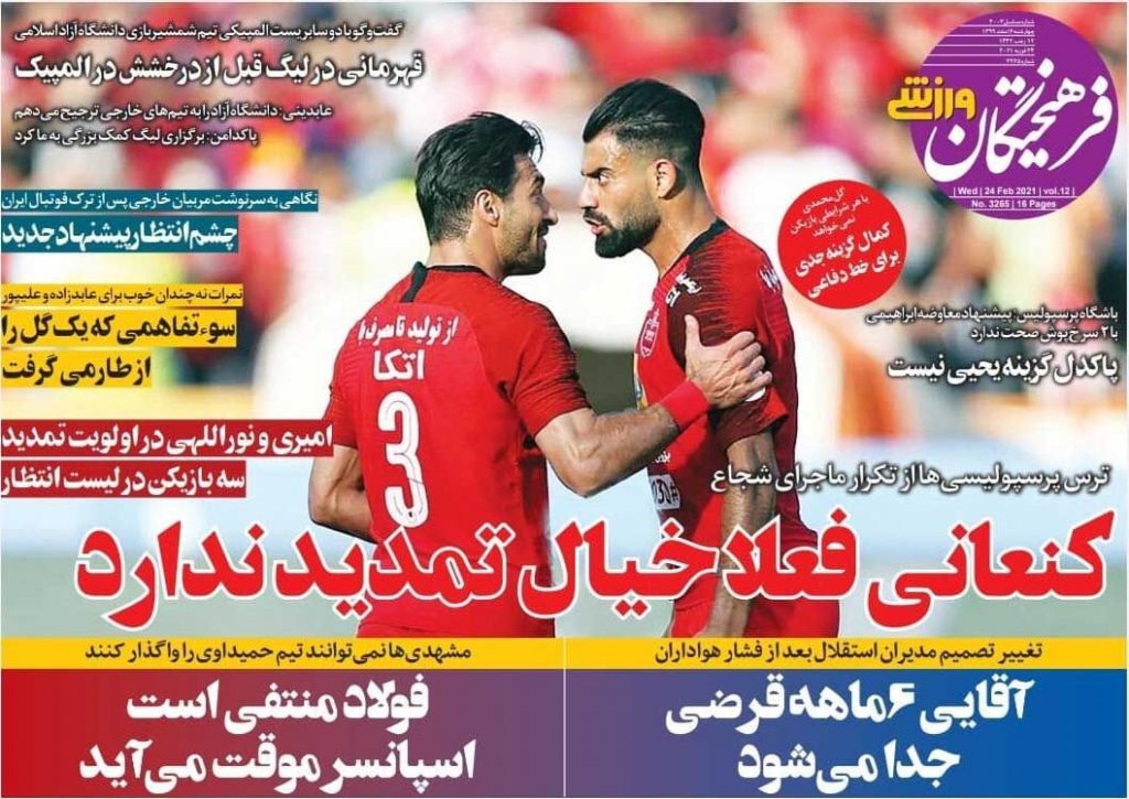 روزنامه فرهیختگان ورزشی| کنعانی فعلا خیال تمدید ندارد 5 years ago جلد روزنامه فرهیختگان ورزشی چهارشنبه ۶ اسفند را میبینید.