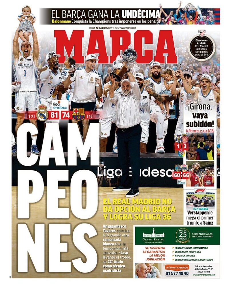 روزنامه مارکا| قهرمانان 4 years ago رئالیها یک مرتبه دیگر هم قهرمان لیگ بسکتبال شدند. بارسلونا در فینال ۸۱-۷۴ به رئالمادرید باخت.