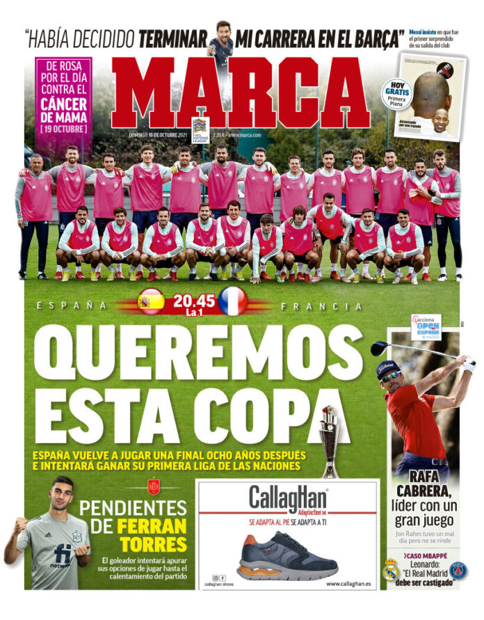 SPORTS روزنامه مارکا| ما این جام را میخواهیم By - October 10, 2021 0 102 FacebookTwitterPinterestWhatsApp اسپانیای جوانشده امیدوار است بعد از ۹ سال یک جام بگیرد. لاروخا باید با فرانسه در فینال لیگ ملتهای اروپا مصاف بدهد.