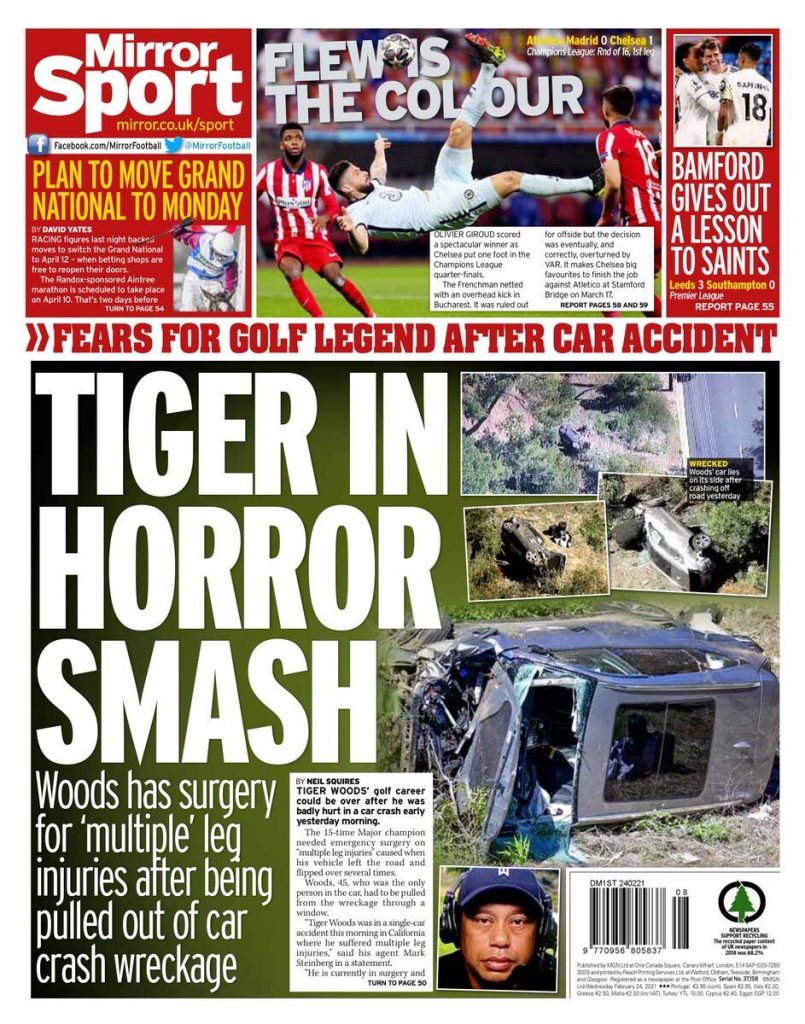 روزنامه میرر| تایگر در برخورد وحشتناک