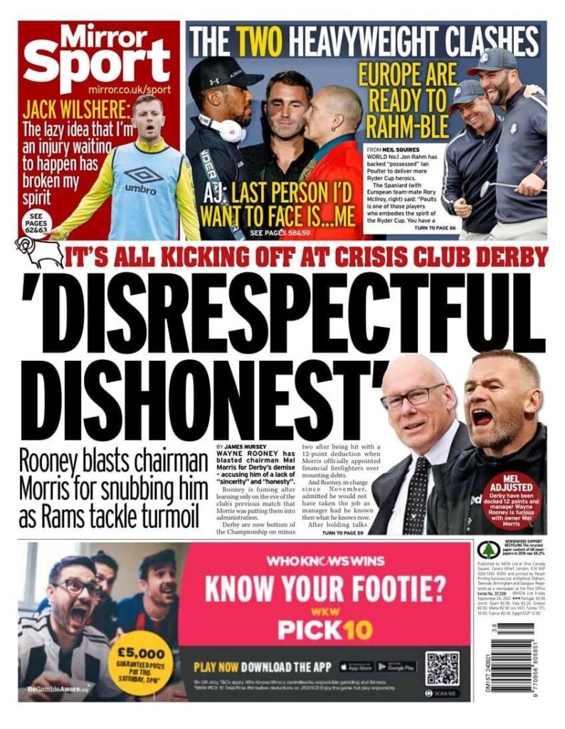 درگیری بین وین رونی سرمربی دربیکانتی با رئیس باشگاه مل موریس بالا گرفته است. رونی، موریس را به متقلب بودن متهم کرده.