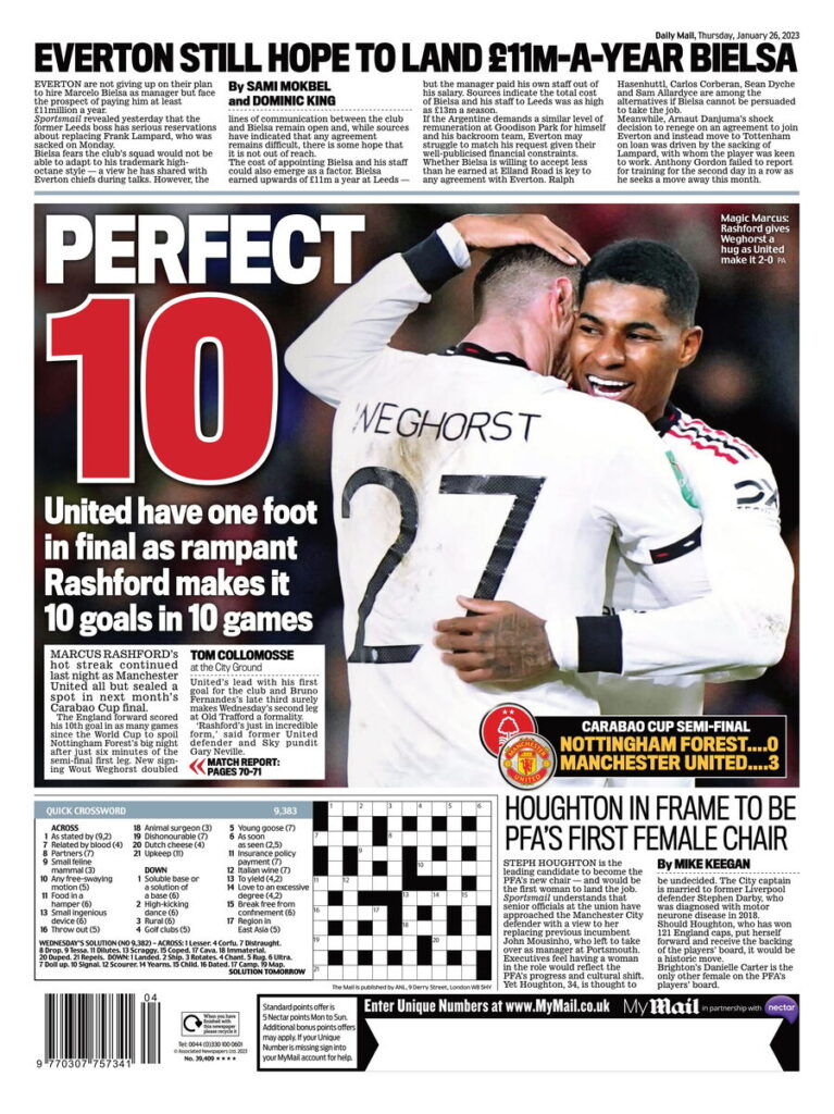 روزنامه میل ۱۰ کامل 3 years ago مارکوس رشفورد در نیمهنهایی جام اتحادیه به ناتینگام گل زد تا دهمین گلش در ۱۰ بازی اخیر برای منچستریونایتد باشد.