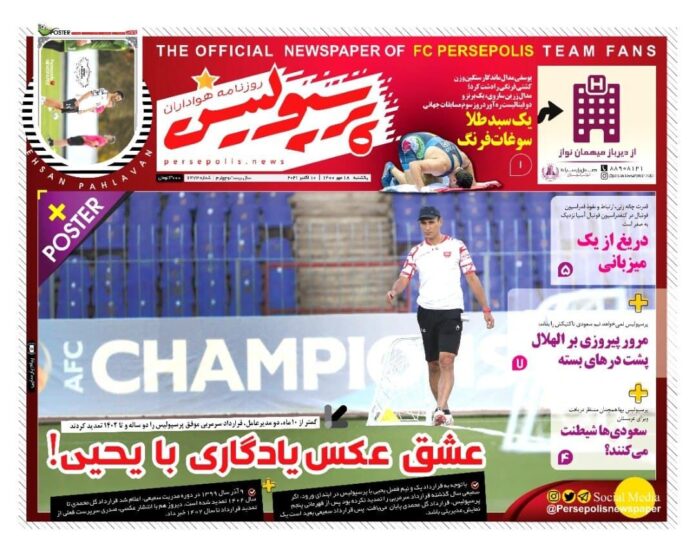 SPORTS روزنامه پرسپولیس| عشق عکس یادگاری با یحیی! By - October 9, 2021 0 106 FacebookTwitterPinterestWhatsApp جلد روزنامه پرسپولیس یکشنبه ۱۸ مهر را میبینید.
