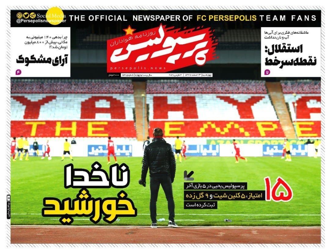 SPORTS روزنامه پرسپولیس| ناخدا خورشید By - March 2, 2021 0 122 FacebookTwitterPinterestWhatsApp جلد روزنامه پرسپولیس چهارشنبه ۱۳ اسفند را میبینید.