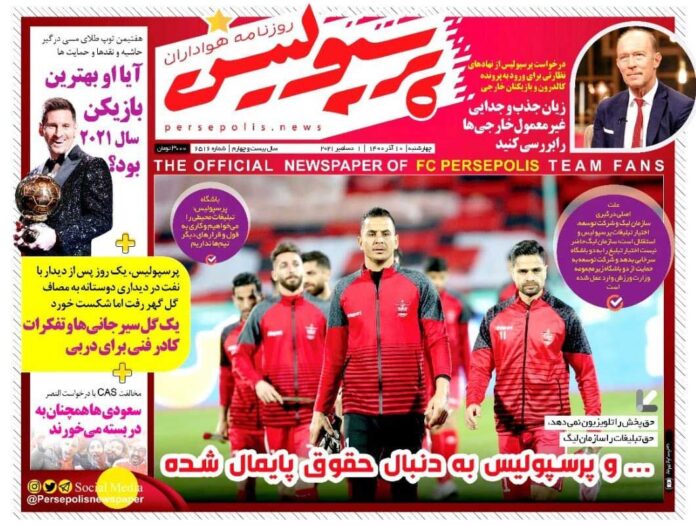 SPORTS روزنامه پرسپولیس| … و پرسپولیس بهدنبال حقوق پایمالشده By - November 30, 2021 0 93 FacebookTwitterPinterestWhatsApp جلد روزنامه پرسپولیس چهارشنبه ۱۰ آذر را میبینید.