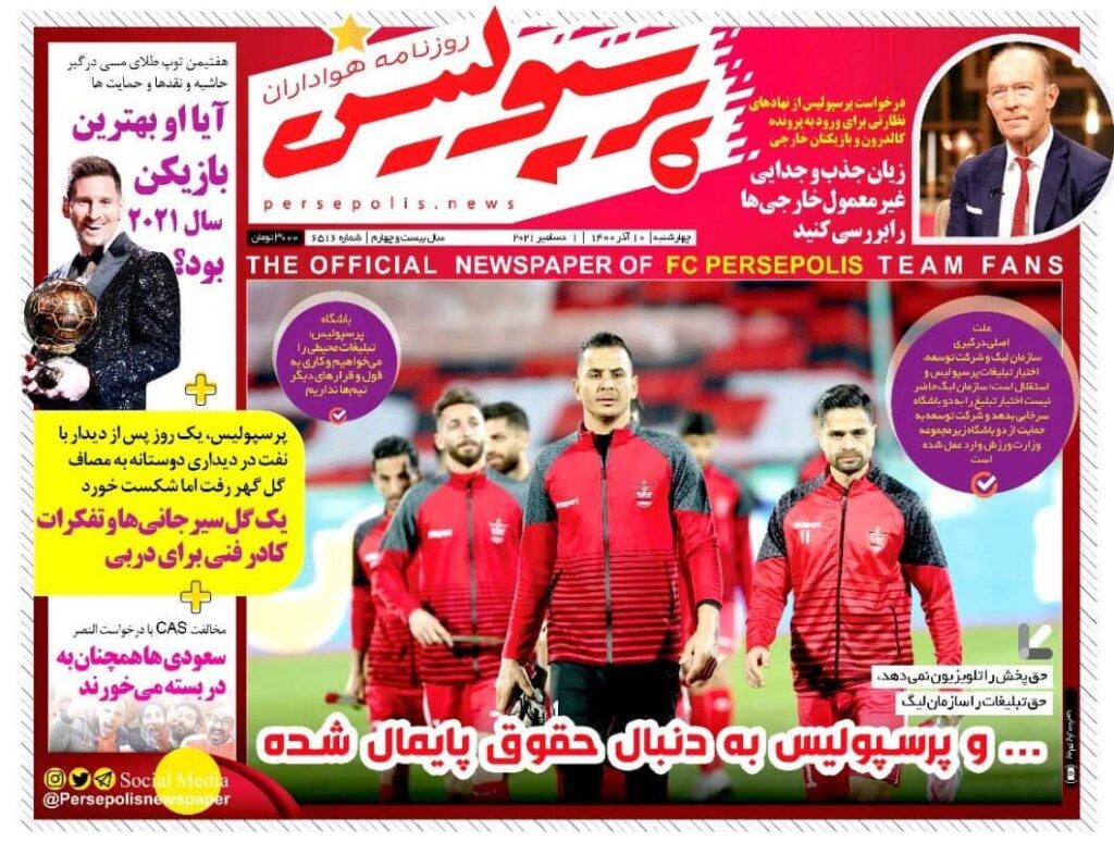 روزنامه پرسپولیس| … و پرسپولیس بهدنبال حقوق پایمالشده 4 years ago جلد روزنامه پرسپولیس چهارشنبه ۱۰ آذر را میبینید.