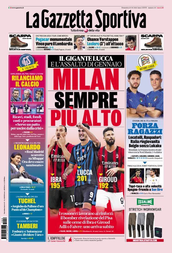 SPORTS روزنامه گاتزتا| میلان همیشه بالاتر By - October 10, 2021 0 103 FacebookTwitterPinterestWhatsApp با خرید احتمالی لوکا، بازیکنی بلندتر از زلاتان و ژیرو به خط حمله میلان اضافه خواهد شد. او ۲۰۱ سانتیمتر قد دارد.